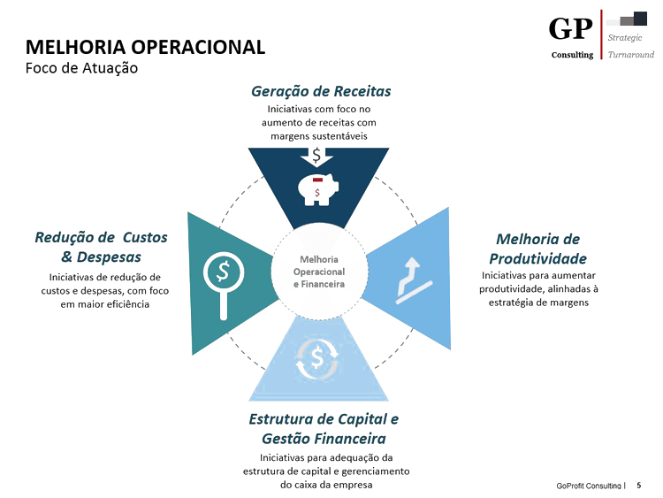 Iniciativas de redução de custos e despesas, com foco em melhor eficiência.